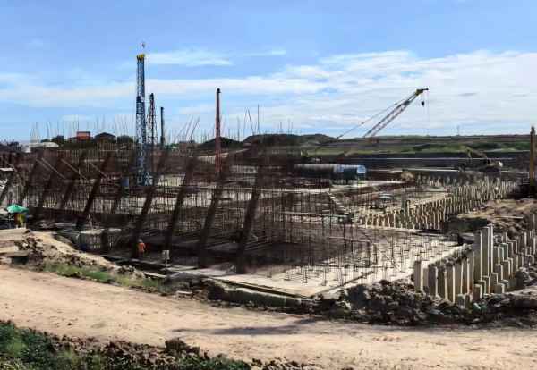 该项目是泰国水利部重点支持的防洪排水渠工程,总投资37亿泰铢,直面区域洪涝顽疾,肩负防洪减灾、保障农业、激活旅游多重使命。其中,排水渠闸门工程、地基处理及渠道开挖工程为核心攻坚任务;项目两侧设有8米高堤岸,配套630米跨路汽车桥及2座排水泵站,共同构成完整的水利交通体系,施工标准达到国际水准。