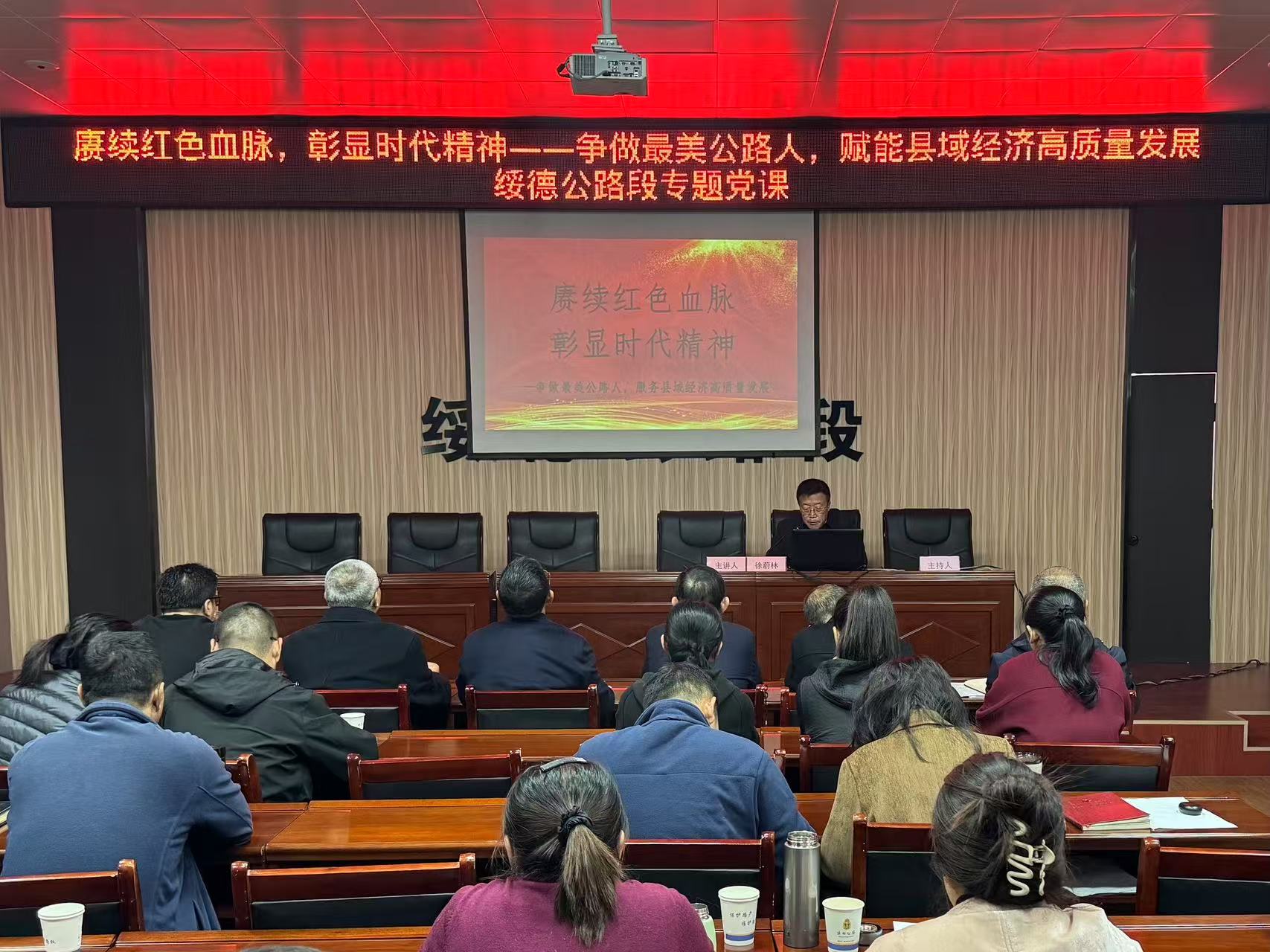 10月28日,绥德公路段特邀绥德县文联主席徐蔚林开展第四季度专题党课。本次党课以“赓续红色血脉,彰显时代精神——争做最美公路人,赋能县域经济高质量发展”为主题,为全体干部职工呈现了一场内容丰富、图文并茂的精神盛宴。