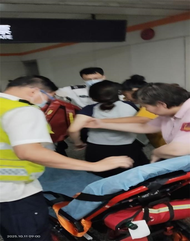 约十分钟后,120急救人员及时赶到现场。经初步查看后,乘客被稳妥地护送至就近的同济医院进行进一步救治。王婉芳站长一路将乘客护送至站外的无障碍电梯,目送救护车驶离后,才返回车站。