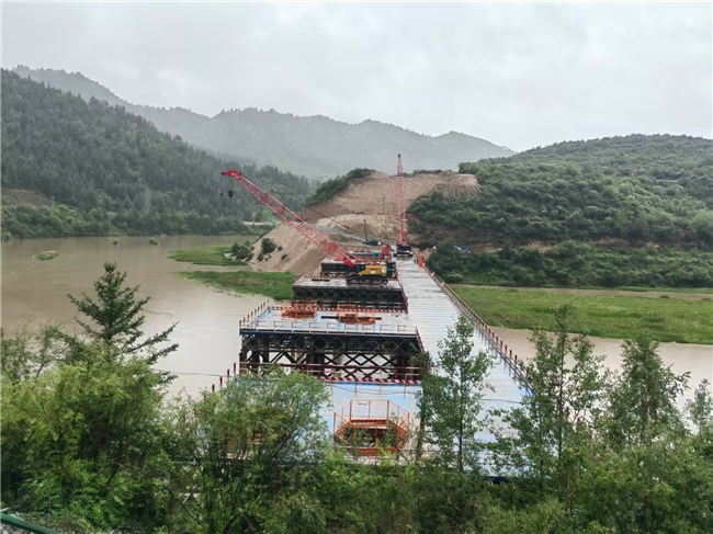 桥梁施工现场同样是紧张有序的忙碌场景。在洮河大桥的施工区域,长臂挖机挥舞着巨臂开挖底系梁作业面,施工人员系着安全绳在高空作业平台上协作配合,测量、调整,每一个动作都娴熟而专注。“这座桥是2025年施工计划的关键节点,桥梁下部结构进度直接影响后续钢栈桥拆除计划,就算是过节,我们也要抢在降温前把主体结构施工完成。”项目桥梁工程师指着正在施工的桥梁说。
