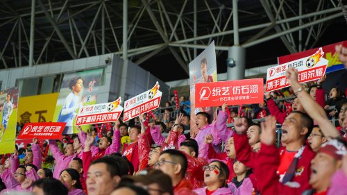 傍晚时分,「热血联盟」娄底核心球迷集结完毕。一件件印有「统艺」标识的红色战袍在阳光下格外耀眼。当球迷换上「统艺战衣」,看台瞬间变成一片流动的红色海洋。品牌LOGO与笑脸同框,构筑起品牌与城市热爱者之间的精神纽带。
