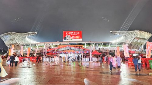当夜幕降临,比赛正式开赛。看台上,「统艺仿石漆」标识闪耀全场。举牌、条幅、旗帜与灯光交织,构成一幅独属于统艺的红色画卷。球迷的呐喊、球员的拼搏、品牌的闪耀,共同汇成城市的沸腾时刻。