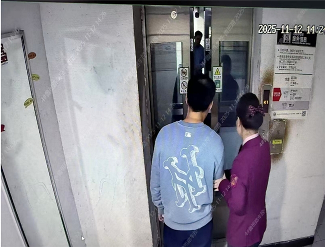 察觉情况后,唐站长第一时间上前帮扶:先是轻轻将乘客搀扶起身,递上矿泉水帮其缓解不适;接着轻声安抚乘客情绪,耐心与其沟通以了解具体情况。在确认乘客意识清晰后,她迅速帮乘客联系到家属,又考虑到乘客的身体状况,特意陪同乘客乘坐无障碍电梯出站,随后小心翼翼地将乘客搀扶至地面,亲手交予家属,并仔细叮嘱家属护送乘客安全回家。