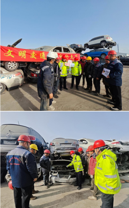 为让文明成为习惯,使礼让成为风尚,自觉把做到守法规、知礼让,减少交通违法发生率,预防道路事故发案率,筑牢交通安全防线,让“文明交通 礼行天下”主题宣传深入人心,共创安全、畅通、有序、和谐的道路交通环境,12月12日,新疆维吾尔自治区库尔勒市公安局交通管理大队宣传中队与西尼尔中队组织民警辅警,将交通安全课堂搬到库尔勒汇鑫机动车报废中心,车祸残骸和报废车辆现场“零距离”开展“文明交通、礼行天下”主题教育,通过直击车祸残骸、报废车辆现场“触心田”,不断教育广大交通参与者摒弃不文明交通行为,拒绝各类道路交通违法,让道路更加畅通,使出行更加安全。