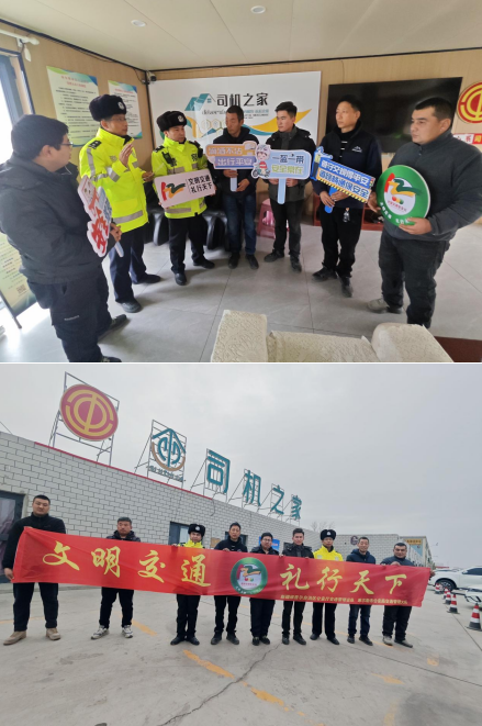 为从源头上消除交通安全隐患,有效应对冬季交通安全风险,深化道路交通事故预防工作,推动道路交通安全管理和服务工作提质增效,确保国道交通安全有序、路畅人安,打好交通安全宣传“主动仗”,织密国道交通“安全网”,12月25日,新疆库尔勒市公安局交通管理大队紧扣“文明交通 礼行天下”主题,坚定冬季交通安全风险隐患“可防、可控、可治”理念,以长途货运车辆驾驶人实际需求为出发点,组织民警辅警深入到新疆维吾尔自治区工会系统“司机之家”建设示范标杆——新疆兴鸿博物流园“司机之家”,通过“贴心服务+精准宣传”,设身处地为驾驶人排忧解难,让路面交通安全宣传有力度,让“暖心服务、安心休憩、贴心保障”更有温度。民警除了向广大驾驶人点对点送服务、面对面讲法律、实打实话安全外,还结合典型交通事故案例,剖析超速行驶、疲劳驾驶、强超强会、分心驾驶、酒后驾驶等交通违法行为的严重危害,将精心准备的冬季交通安全“大礼包”送到大家手中,使交通安全知识可感、可触、可践行,为国道安全、有序、畅通提供强有力的保障。