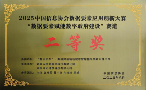 导语: 2025年8月16日至17日,以“数据赋能 乘数而上”为主题的2025中国信息协会数据要素应用创新大赛决赛在京圆满举行。来自全国各地的优秀参赛队伍齐聚一堂,展开激烈角逐。最终,湖南云桩新能源科技有限公司与湖南开元建筑科技有限公司凭借“智治泊车”项目脱颖而出,荣获数据要素赋能数字政府建设二等奖。
