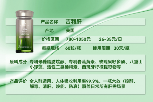 徐先生(49岁,企业高管,重度脂肪肝) :“因长期饮食不规律、熬夜,导致重度脂肪肝和体重超标。客服建议前三个月每日两次、每次两粒强化调理。我吃了4个月后,肝功能指标基本恢复正常,体重减轻10斤,腹部明显变小,精力大幅提升。”