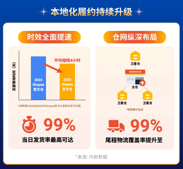 “本地化履约”已成为Shopee助力跨境卖家稳定增长的核心支柱。2025年,采用本地化履约(LFF)的店铺单量同比增长超过100%,销售额增幅逾70%。这得益于平台对履约链路的深度优化:通过在主仓基础上逐层铺设卫星仓,尾程物流覆盖率已提升至99%,曾经难以触及的偏远地区如今也能稳定送达。在巴西市场,Shopee更是跑通了全链路自营的跨境直邮通路,通过提升平台清关比例,将履约时效最快缩短了2天,实现了更快的交付与更稳的体验。
