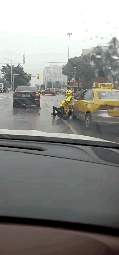 该车怪异举动引起路口执勤人员的注意,便将该车拦停要求杨某某出示相关证件,杨某某声称走错路拒绝出示证件不配合检查,并从驾驶坐垫下拿出一把铁锤,对执勤人员做出恐吓威胁的举动后驾车冲卡。