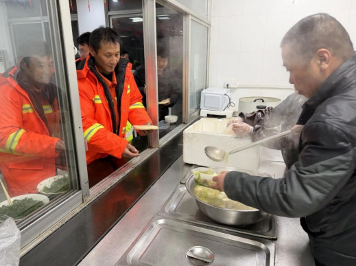在保障前线作业的同时,后勤支撑也暖心到位。南京市公路中心绕城工区为扫雪除冰归来的一线人员送上热乎羊肉汤,用暖胃热餐助力大家持续作战;宁马收费站在安全岛、阶梯、卫生间门口等位置铺设麻布,收费车道同步开展人工撒布融雪剂作业;各汽车客运站凌晨便组织员工开展扫雪除冰工作,为旅客出行扫清障碍。