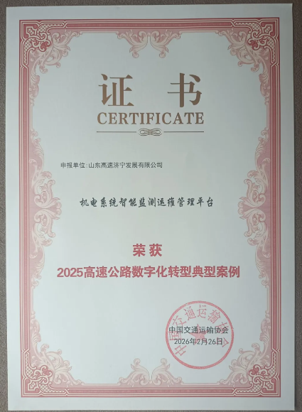 近日,山东高速济宁公司自主研发的“机电系统智能监测运维管理平台”获评中国交通运输协会第三届高速公路绿色智慧发展大会“2025高速公路数字化转型典型案例”,标志着公司在运营管理智能化升级和绿色智慧高速发展方面取得实质性进展。