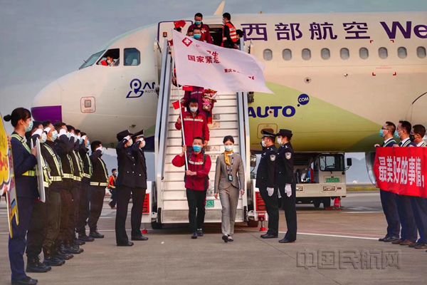 在接到“迎接英雄凯旋”包机任务后,西部航空迅速行动,紧急协调飞机执行任务,精心做好空地消毒防疫等措施。选派党员先锋岗机组执行航班。