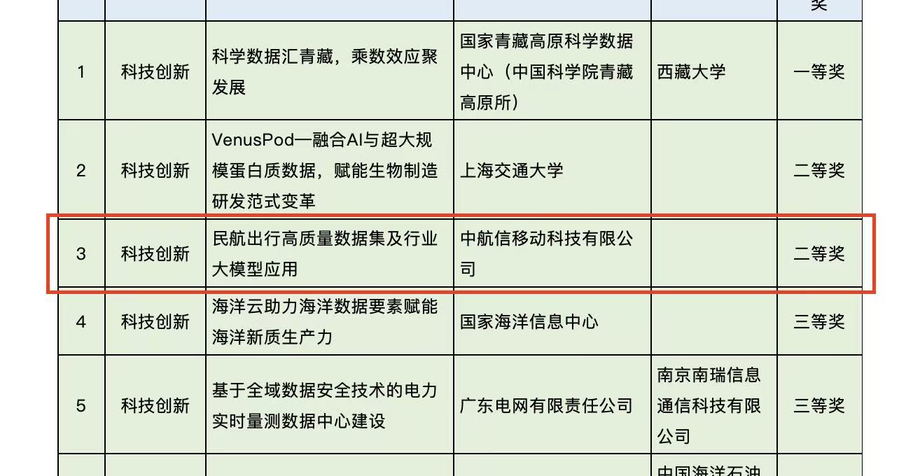 近日,由国家数据局联合中央网信办、工业和信息化部等多个部委及机构发起的2025年“数据要素×”大赛全国总决赛圆满收官。中航信移动科技股份有限公司(航旅纵横团队)“民航出行高质量数据集及行业大模型应用”在众多参赛项目中脱颖而出,获得科技创新赛道二等奖,充分展现了其在数据要素赋能产业升级中的领军实力。