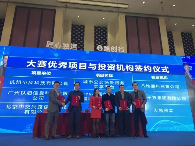 颁奖典礼上,创业大赛中涌现的优秀项目与投资机构进行意向签约。其中,“Tereye 智能车载HUD辅助驾驶解决方案项目”与北京千方集团有限公司签约。会后,千方集团投资管理部副总经理余周军表示公司持续关注且一直在寻找人工智能、机器视觉、大数据、车联网、智慧物联、智慧路网管控等领域的尖端技术、创新产品及可行性商业模式,希望更多有志于此的好团队、好项目通过这个平台找到我们,加入我们,与我们共享上市公司资本平台、投融资平台、技术研发平台、全国市场平台带来的便利,持续推动多方共赢。