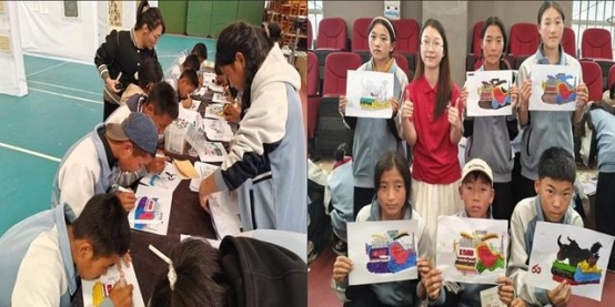 志愿者朱昕策划的“雪域华章”百人共绘画卷活动将现场气氛推向高潮。在集体创作的过程中,学生们相互交流、互相启发,于画卷上尽情挥洒创意与热情,用画笔细腻描绘西藏的壮丽山河、独特的民俗文化,以及对未来生活的美好愿景,共同勾勒出一幅展现社会主义现代化新西藏建设蓬勃发展的壮丽画卷。