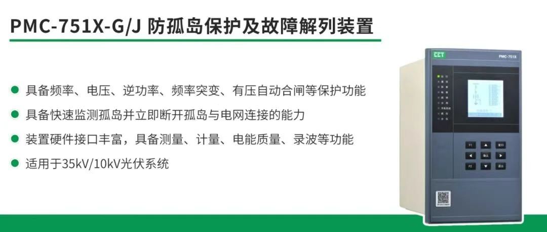 此外,PMC-751X-G/J防孤岛保护及故障解列装置作为关键后备保护,能够在电网故障时快速切除分布式光伏孤岛电源,进一步增强了系统的安全性。