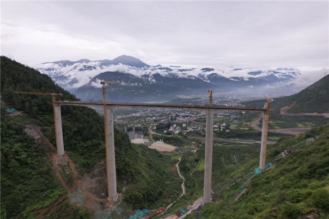 离地面157米的汉源第一高桥——下堰沟大桥主墩高达112米,主跨为65米+120米+65米连续刚构,需在陡峭的山体间搭建“空中走廊”,项目团队应用液压爬模和挂篮施工工艺,为工程建设保安全、加速度。如今,下堰沟大桥已顺利完成三跨主跨毫米级精准备合龙,雄伟的桥体横跨山谷,成为横断山脉间一道崭新的亮丽风景线。