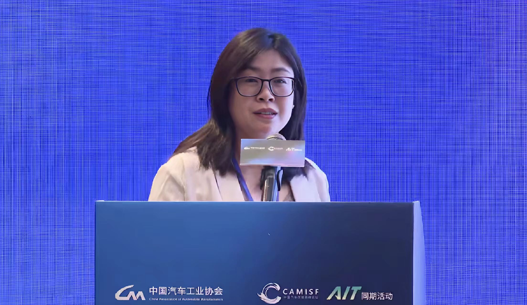 图:艾巴赫亚太区副总经理顾菁发表演讲,分享德国企业在汽车悬挂系统领域的创新经验与全球化运营模式