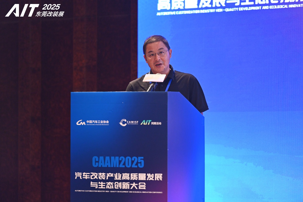 图:中国汽车工业协会副秘书长杨中平发表致辞,强调了汽车改装产业对激发内需潜力的重要意义