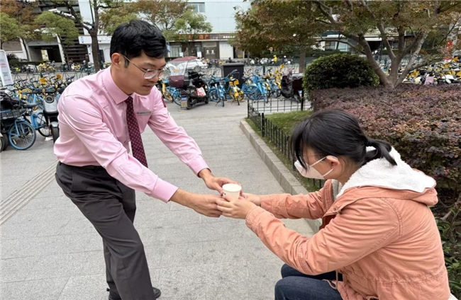 2025年11月17日,气温突然骤降,上海地铁7号线镇坪路值班站长朱思杰在出入口巡视时发现一名女性乘客坐在出入口平台边缘面无血色,值班站长朱思杰上去询问后得知因今天气温骤降并因出门着急未能及吃早饭导致乘客双眼发黑身体,身体无力,朱站长得知后立即响应,考虑到乘客可能是未吃早饭导致的低血糖等紧急情况,朱站长从口袋里拿出一包随身携带的白砂糖给乘客服下并对讲机通知车站工作人员给乘客倒一杯热水,不久后一杯热气腾腾的热水送到了出入口后,朱站长将纸杯递给乘客,乘客接过纸杯后,感受到了一阵暖意,乘客眼中闪过一丝感动并向朱站长表示感谢。乘客稍作休息后,面色恢复如初,朱站长搀扶着该乘客进入车站并目送乘客上车,并叮嘱她注意安全,要准时吃饭。