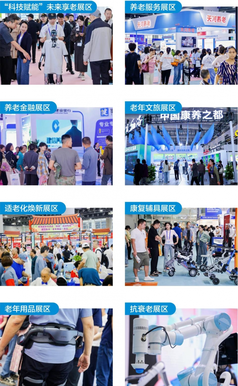 • 养老服务展区:以“复刻还原”养老新场景为亮点,分星级养老机构、专业照护及人才支撑板块,展示养老服务新生态。