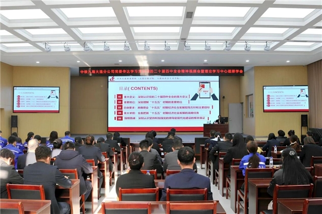 11月28日,中铁九局大连分公司召开传达学习贯彻党的二十届四中全会精神视频会暨理论学习中心组联学会,邀请大连市委“党的二十大精神理论普及宣讲团”成员、中共大连市委党校李崇峰教授授课,并进行研讨交流。