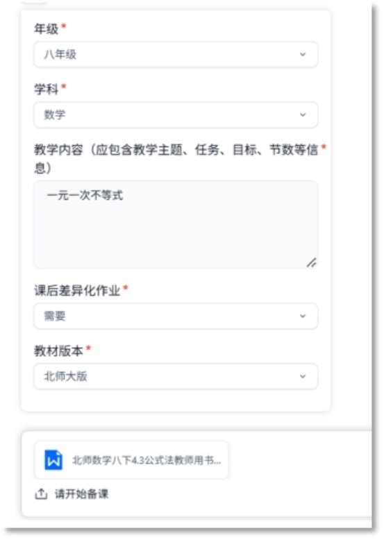 面向教师,平台提供智能备课、智能命题等六类智能体服务,旨在将教师从繁琐事务中解放出来,更聚焦于育人本质。智能备课系统能精准对标新课标要求,依据教师指定的知识点或教材章节,自动生成结构清晰的教学目标、重难点和教学过程设计;智能命题系统则支持按教材版本、年级、学期等信息快速组卷,并可灵活设定难度比例。