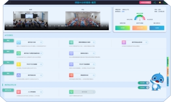 面向教学管理员,基础教育AI服务平台接入AI课堂分析智能体,可对教师的教学设计、课堂行为、互动质量、学生参与度及高阶思维提问等关键环节进行精准分析,并自动生成详细报告。