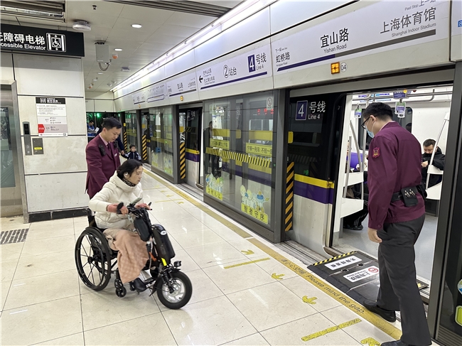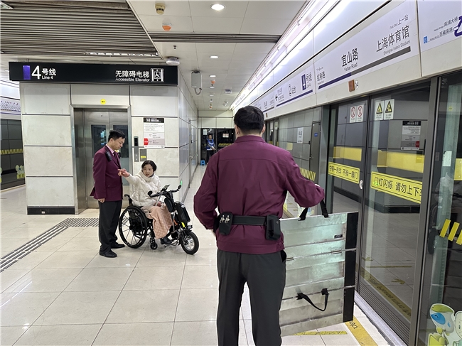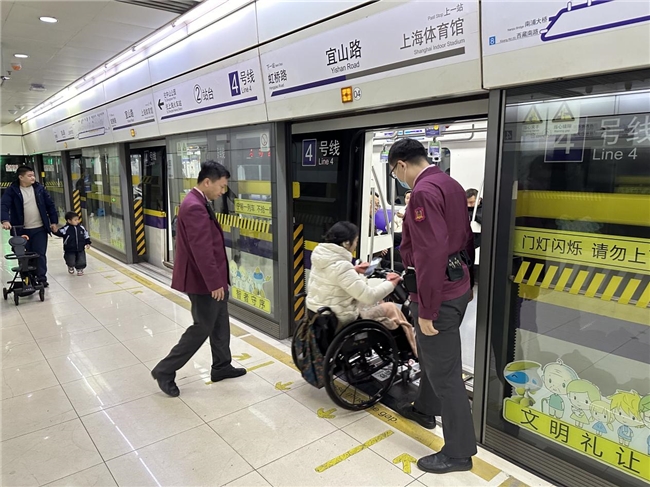 2025年12月13日,13:20分左右上海地铁4号线宜山路站值班站长陆飞接到车站值班员通知有乘客拨通求助按钮需要帮助,值班站长陆飞知晓后,立即前往现场。经了解这位乘客要到4号线曹杨路,但因腿脚不便无法进站。值班站长陆飞通过无障碍电梯将乘客送到站台,通过渡板将乘客送到车厢并联系曹杨路做好接力。乘客对此非常感谢。值班站长陆飞表示,这是我们应该做的,“爱心接力,我们与您同在”