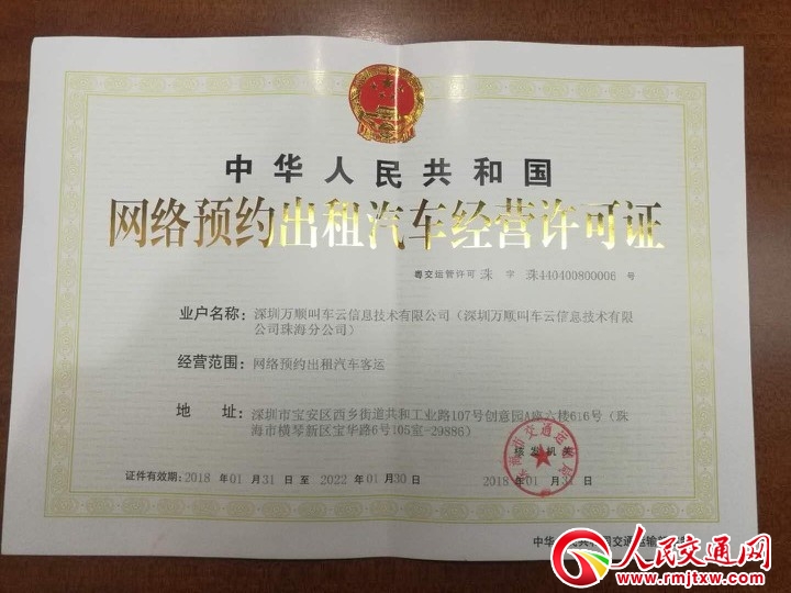 万顺叫车珠海分公司负责人罗伟红表示:“为了更加规范、有序的经营,同时保障司乘两端的利益,万顺叫车珠海分公司在珠海市网约车新规颁布后,向珠海运管部门递交了审核材料,积极配合各项审核工作,经过主管部门严格审核,万顺叫车各项指标均符合要求顺利过审,获得了珠海市《网络预约出租汽车经营许可证》。