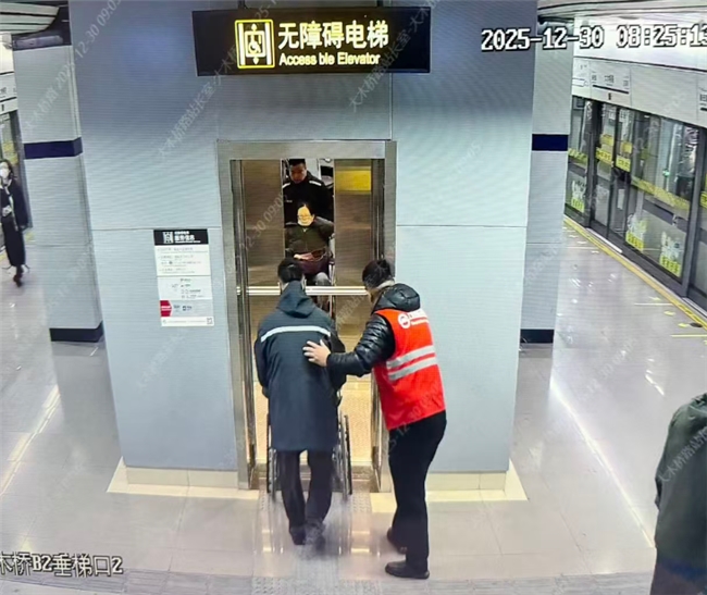 2025年12月30日早高峰时段,上海地铁4号线大木桥路站,上行列车关门时,车厢内乘客反映有名女乘客需帮助。车控室立即协调司机二次开门,同步通知值班站长刘佳,站务员随即上车搀扶女乘客下车。