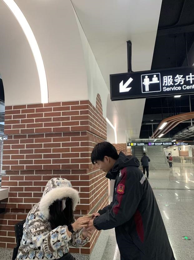 当时,钱佳宝像往常一样在站厅巡视,突然注意到一名倚靠在柱子旁的年轻女性乘客神情异常。“她脸色苍白,额头冒汗,身体微微颤抖。”钱佳宝回忆道,“我立刻意识到她可能身体不适,便快步上前询问。”