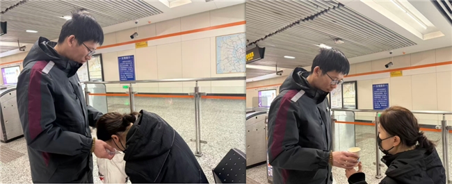 2026年1月15日11时20分,上海地铁7号线在镇坪路站站务员在站厅巡视时,注意到一名女乘客手扶栏杆、脸色苍白,身体明显摇晃不适。他立即通过对讲机呼叫值班站长俞文清前往现场处置。