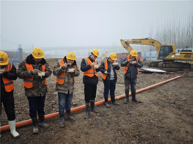 活动现场暖意融融,一碗碗热气腾腾的汤圆端到工友们手中,暖意顺着指尖蔓延至心底。大家围坐在一起,一边品尝着软糯香甜的汤圆,一边畅谈家乡的元宵习俗,分享节日的喜悦,欢声笑语不断,让忙碌的工地充满了“家”的温情。“虽然我们远离家乡,但这一碗汤圆让我们感受到了团圆的味道,也感受到了项目部的关怀。”项目办公室主任常明举表示,希望通过这样的暖心举措,将团圆的祝福传递给每一位一线工友,让大家以更饱满的状态投入到施工生产中。