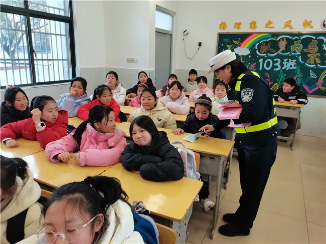 为让宣传更接地气,民警围绕出行、佩戴头盔、乘车规范、交通标志等内容展开互动问答,学生们踊跃参与,在轻松氛围中牢记安全常识。民警还向师生发放宣传资料和《致全市家长及学生们的一封信》,重点讲解上下学途中注意事项,引导学生牢记“一停、二看、三通过”,远离车辆盲区,自觉抵制交通陋习。同时,民警还鼓励同学们争当“交通安全小小宣传员”,以“小手拉大手”带动家人及身边人共同遵守交通法规,营造文明出行良好氛围。