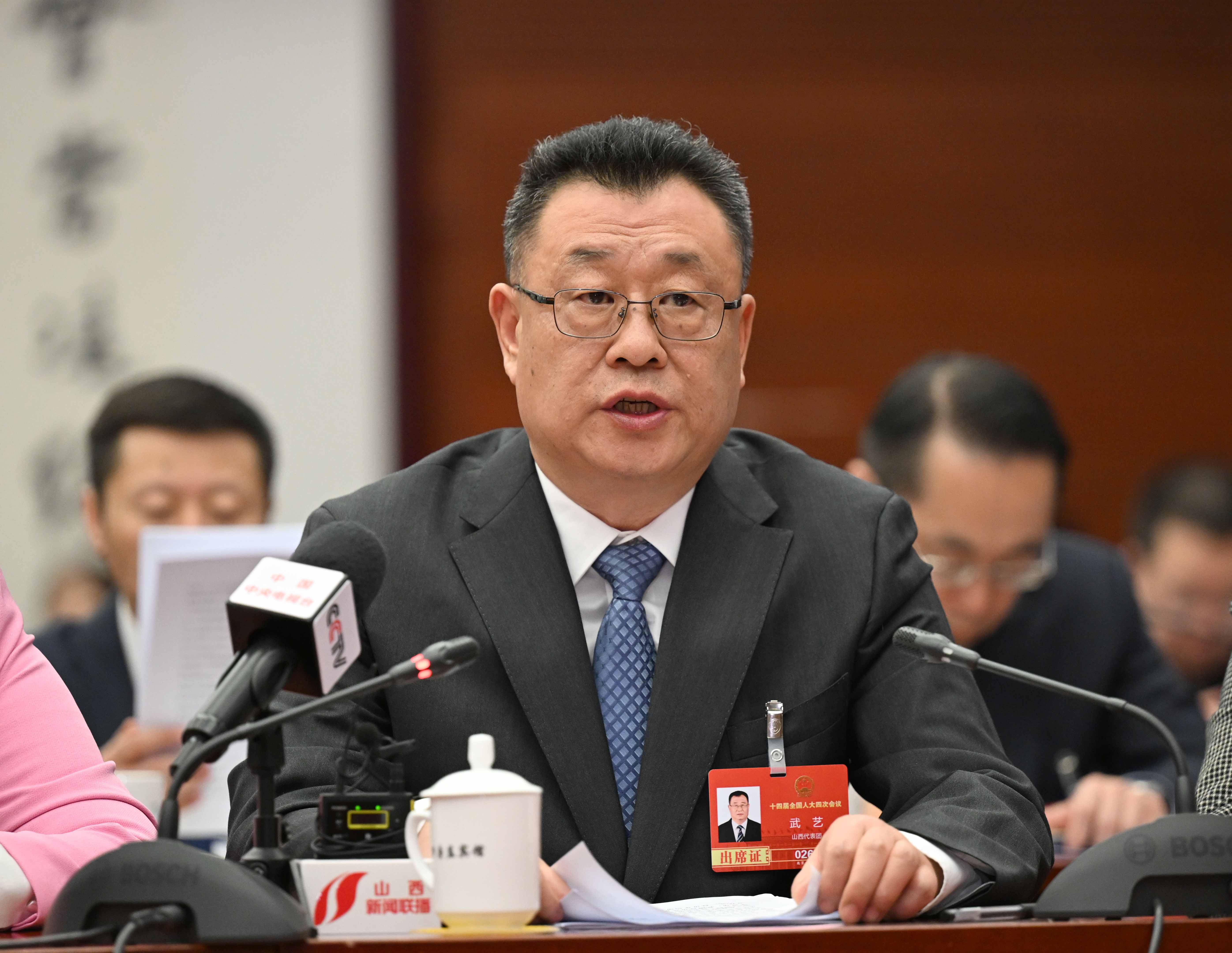 全国人大代表、山西交通控股集团董事长武艺正在发言。
