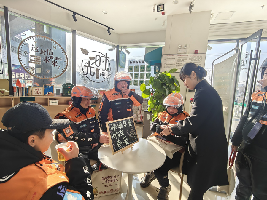 “一杯热茶暖身,反诈知识暖心,邮政服务既贴心又安心!”一位外卖小哥现场说道。