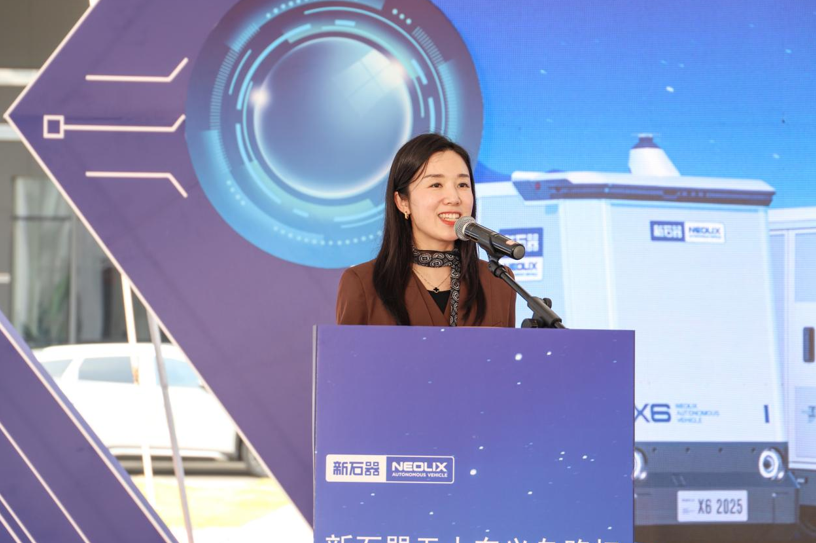 授牌仪式中新石器无人车合伙人张卫玲发表讲话