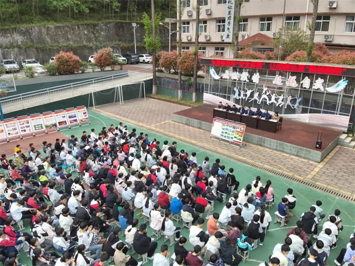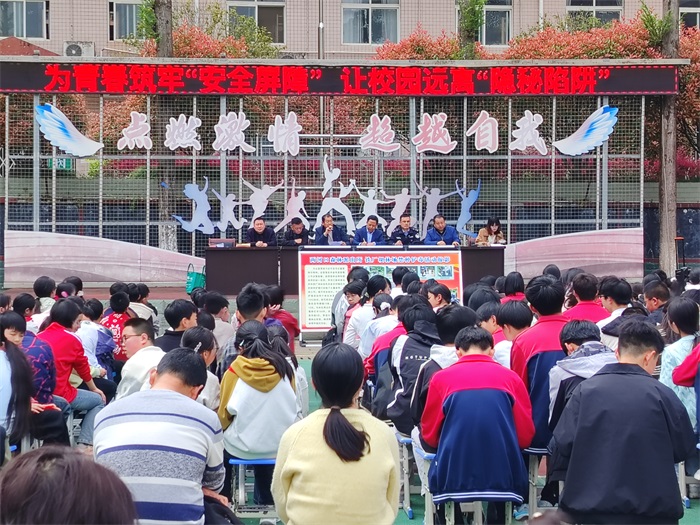 4月10日,略阳县两河口镇初级中学联合国有铁厂坝林场,两河口社区,两河口镇中心小学,两河口派出所在两河口初级中学举行“为青春筑牢安全屏障,让校园远离隐秘陷阱”主题教育活动。