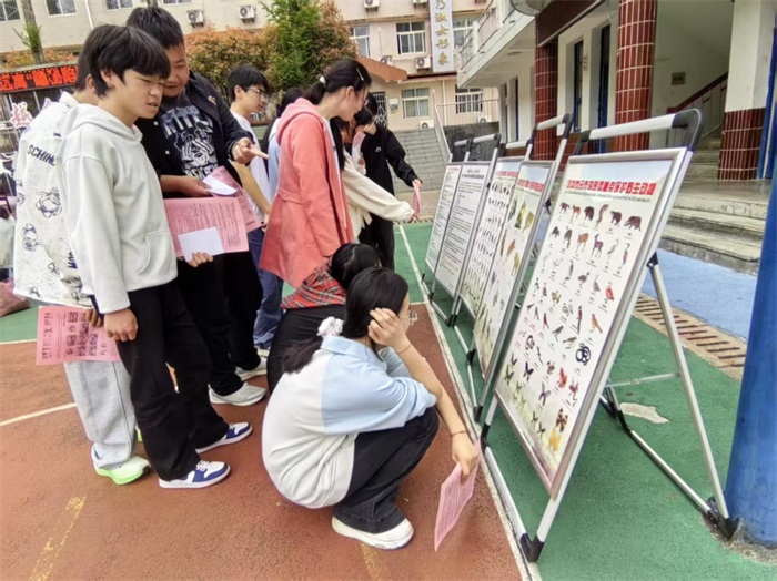 林场副场长淡成固进行了《爱鸟周暨野生动植物保护与禁种铲毒宣传进校园》主题讲话,围绕“敬畏万物生灵,守护绿色无毒家园”和大家分享几点思考。要求同学们爱鸟护鸟,做生态文明的守护者,为第45届“爱鸟周”守护蓝天飞羽精灵,共绘和谐生态画卷。当学生们听到介绍黑河流域也有东方宝石朱鹮观测站时,兴奋得无语言表。