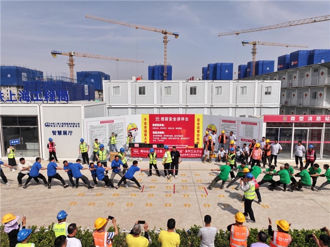 近日,为丰富一线建设者业余文化生活,切实缓解工作压力,中铁上海局建筑公司廊坊前进村棚改项目联合业主、监理、协作队伍等单位开展“欢乐五一”文体活动。
