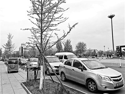 在东关公交车站,路侧停车位已经停满各种车辆。在40辆私家车中,10辆为非京牌照。国美电器商城前的停车场,60辆私家车中,外地牌照车辆有22辆。沃尔玛超市前的路侧停车位,15辆汽车中,有7辆为外地牌照。此外在绿韵广场东侧的人行道上,停放的5辆车居然挂的全部为外地牌照。