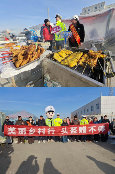 在摊位前,库尔勒市公安局交通管理大队与托布力其乡湖滨社区、库尔勒九号电动车联动送法律、送安全、送服务,警社企采用摊主、农村群众喜欢听、听得懂、记得住、用得上等“接地气”等方式,开展交通安全有奖问答、民警辅警向农村群众赠送安全头盔、发放水杯等精美礼品的同时,让“文明交通、礼行天下”“一盔一带 、安全常在”“头盔护生命、安全进万家”等交通安全知识入心入脑,同时还组织逛巴扎的群众戴上VR特效眼镜体验酒醉驾的严重危险,为筑牢冬季道路交通安全防线,从源头上预防交通事故打下了坚实的基础。
