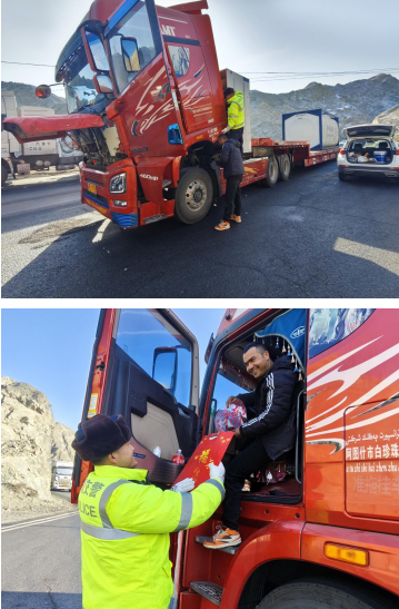 2月2日清晨8时30分许,一辆从新疆维吾尔自治区阿克苏往乌鲁木齐运输32吨沥青的新P19798中型半挂车在G216线1186+200处的塔什店山区道路上挡位失灵,只能挂高挡位,无法挂一至二挡,这下可急坏了驾驶人艾先生。正当他将中型半挂车停在道路旁,焦急地四处求助无果时,库尔勒市公安局塔什店中队的领导执勤交警驾驶警车巡逻时发现这一警情,及时用警车开道,引领中型半挂车安全驶到塔什店山区临时停车区,并从塔什店镇请来大车修理师傅,经过两个小时的不懈努力,终于修好了车,执勤交警还给驾驶人艾先生送上装有“平安福”袋的交通安全大礼包,护送艾先生驾驶中型半挂车驶向目的地。