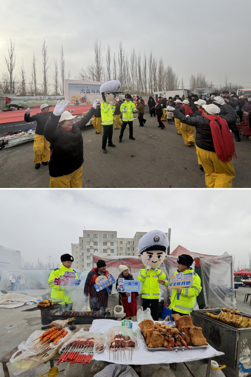 卖烤全羊的阿布来提·阿布都瓦依提看到“文艺宣传小分队”的民警辅警们主动打着招呼,村民和来自乌鲁木齐的游客以及托布力其乡滨湖社区工作人员、演出队的文艺爱好者也参与到交通安全宣传和文艺表演当中……警民踏歌起舞,所有对新春的憧憬和热爱都伴着欢腾的舞步而沸腾起来。