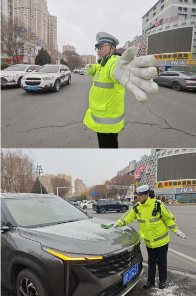 面对寒潮、风雪、结冰等恶劣天气给道路交通安全形势带来严峻,3月12日,新疆库尔勒市公安局交通管理大队启动恶劣天气应急预案,提前部署、科学布警、加强疏导、上下联动、快速处置、为民服务,大(中)队领导带领广大民警辅警全警上路、全员上岗,坚守路面一线,加强路面管控,指挥疏导交通的同时,还加大巡逻力度,做到“见警察、见警车、见警灯”,民警辅警还帮助驾驶人擦拭车牌和车上的积雪,消除影响交通安全的隐患,把“防事故、保安全、保畅通”真正落到实处。