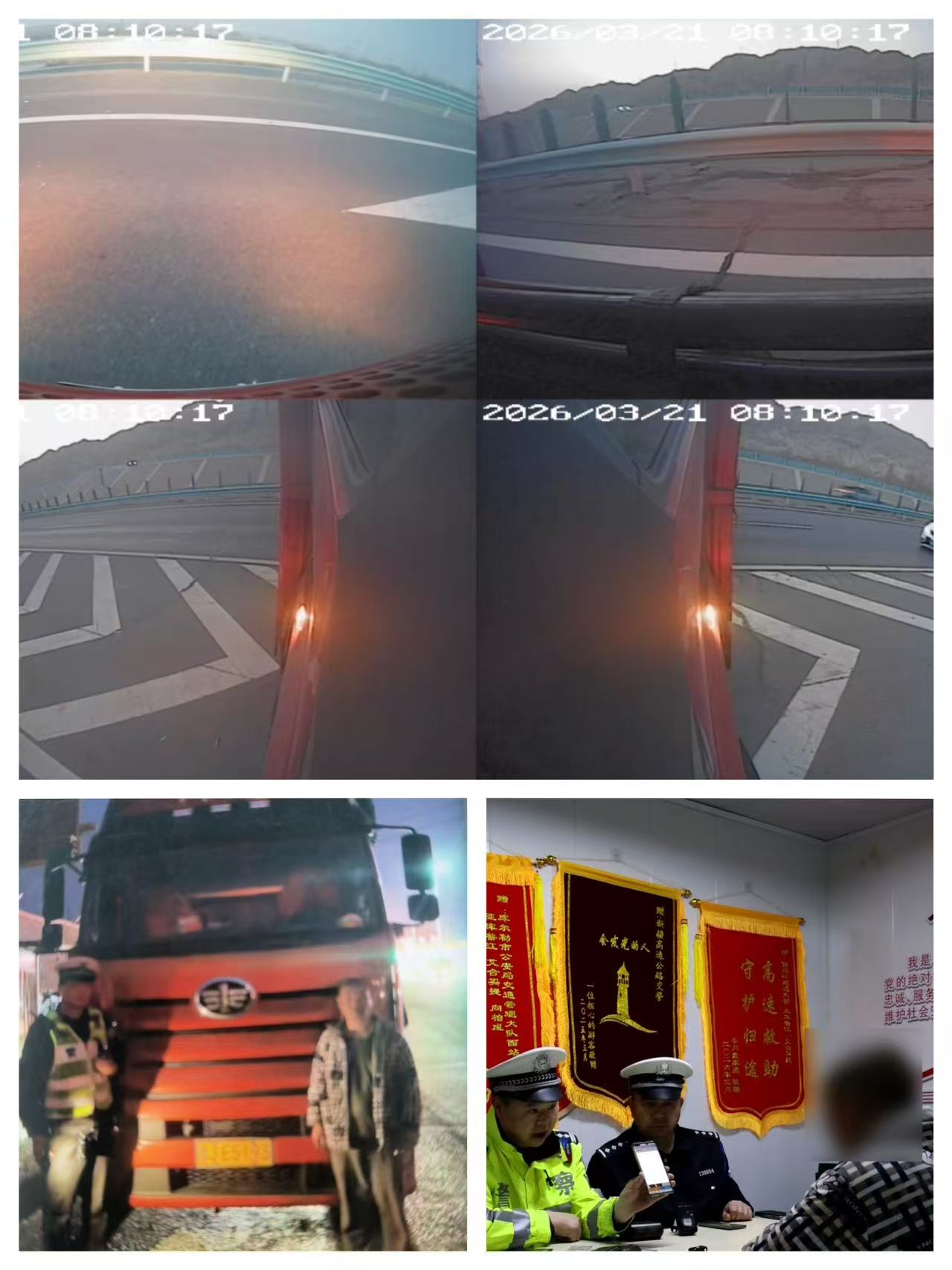 接到驾驶人举报后,库尔勒市公安局交通管理大队西站中队中队长伊力哈木·买买一边向大队领导进行汇报,一边为消除这一重大交通安全隐患,立即安排执勤民警辅警调取高速公路上交通违法抓拍视频,通过大货车号牌查询到了车主,了解到了驾驶人郑某某的联系方式后,执勤民警马不停蹄地联系驾驶人,郑某某的手机打通了好几次却没有人接听。执勤民警又动之以情、晓之以理地做车主的思想工作,经过车主协调,郑某这才接听了执勤民警的电话,表示自己在焉耆县卸完车后才能返回库尔勒接受调查处理。