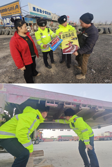 2月4日,新疆库尔勒市公安局交通管理大队宣传中队与西尼尔中队组织民警辅警深入到G218线库尔勒辖区的各个停车场、修理部等重点运输车辆,向车主、驾驶人和修理人员开展“靶向宣传+隐患清零”交通安全宣传,力争从源头上筑牢交通防线、拧紧道路“安全阀”,为即将来到了新春佳节营造安全、有序、畅通的道路交通环境。