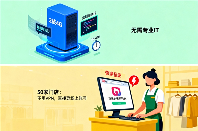 真实案例 2:连锁服装电商 ——2 核 4G 云主机 15 分钟部署,门店员工不用 VPN 就能安全登账号
