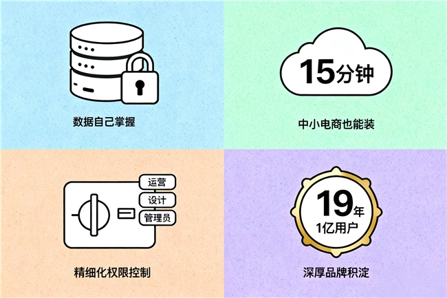 ● 数据完全自主 :所有账号、客户、订单数据存企业私有空间,不经过第三方,符合国内电商合规要求,不怕数据泄露;